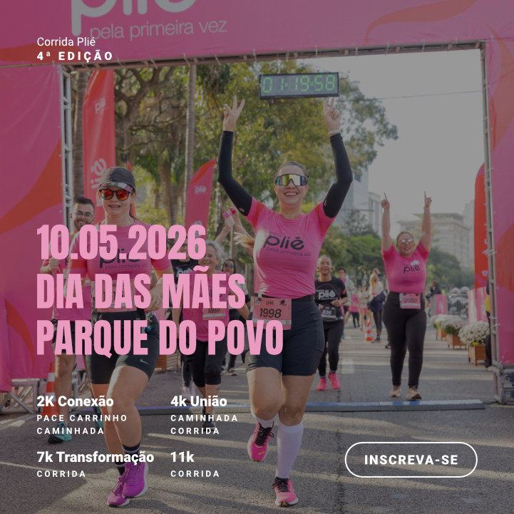 Eu não sou corredora profissional. Nunca fui. Mas a Plié me mostrou que a corrida não começa na distância ou no pace. Ela começa na coragem de tentar pela primeira vez. Foi ali que me motivei, me emocionei, me conscientizei e entendi que a corrida poderia, sim, fazer parte da minha vida.
