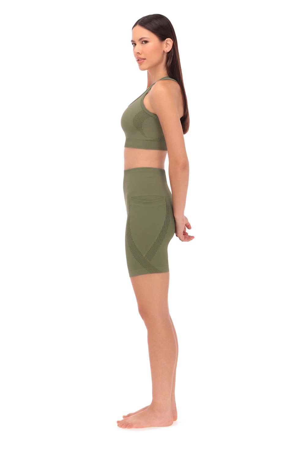 Possui cintura alta dupla com duas texturas de canelado, que proporciona firmeza, segurança e modelagem na região abdominal. O bolso lateral funcional é perfeito para carregar itens essenciais, como celular, cartões ou chaves, durante o treino ou no dia a dia.