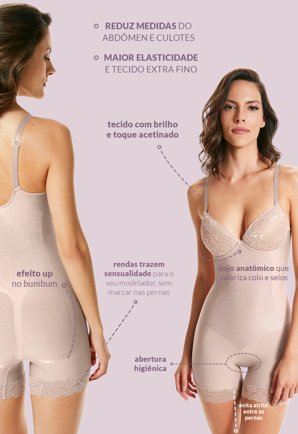 - Rendas trazem sensualidade para o seu modelador, sem marcar nas pernas.