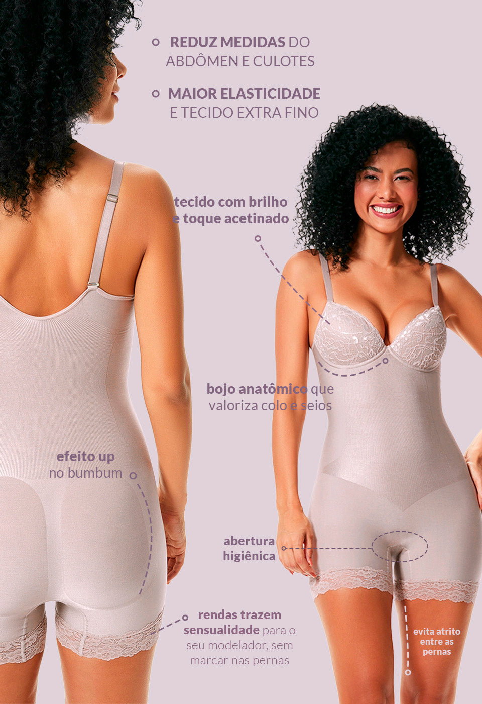 - Rendas trazem sensualidade para o seu modelador, sem marcar nas pernas.