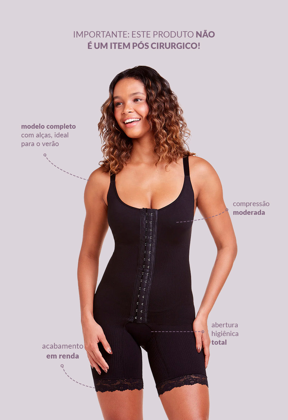 Este body macaquinho modelador com alças finas realça suas curvas com: