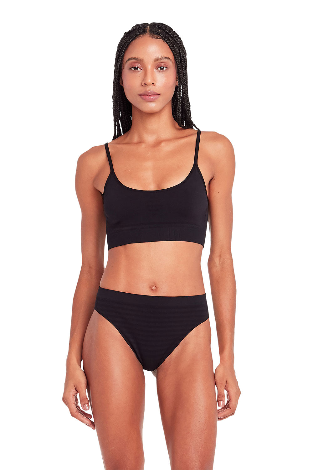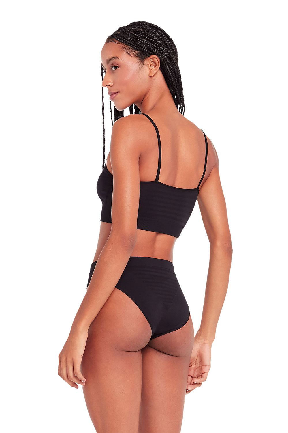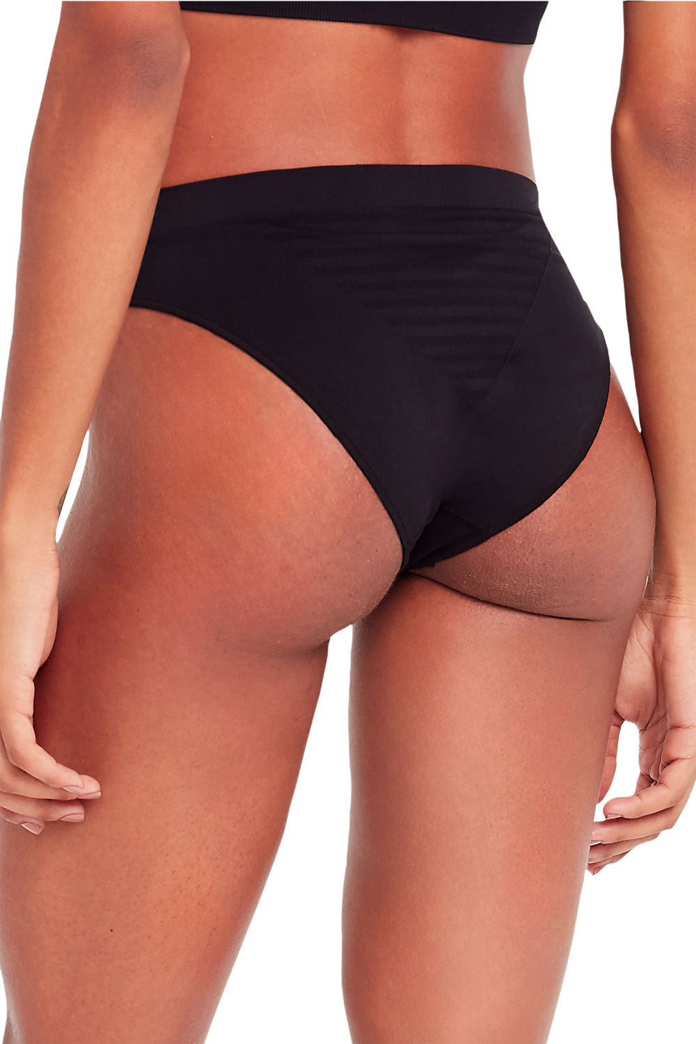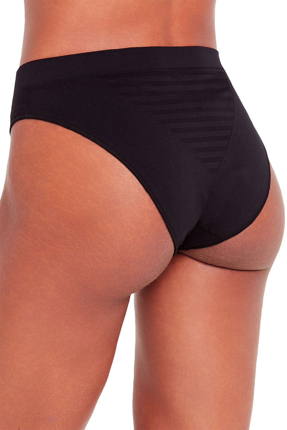 - Listras horizontais com leve transparência na frente e na região do cóccix para charme e respirabilidade