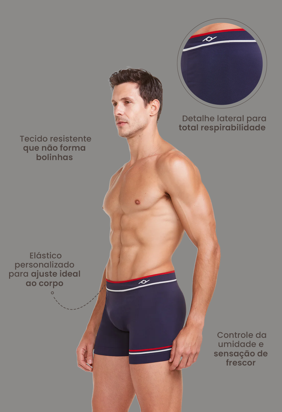 O design sem costuras oferece um toque macio e suave, garantindo um ajuste perfeito com total liberdade de movimentos, e sem enrolar nas pernas. Com tratamento hidrófilo, permite que a pele respire livremente, elevando o conforto a um novo patamar.