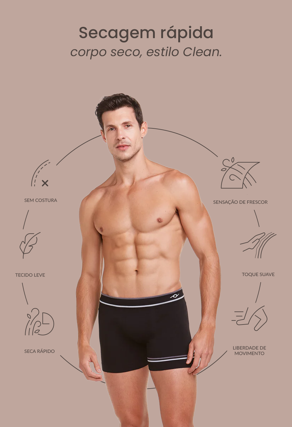 Além de prática, a cueca boxer Plié é fácil de lavar e possui secagem rápida, ideal para rotinas agitadas. Sem contar na vantagem de que o tecido não forma bolinhas. Muito bom, não é mesmo?