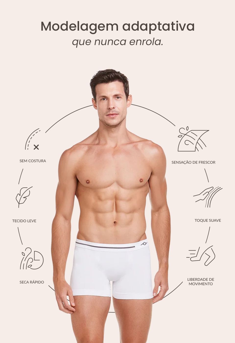 Cueca Boxer Microfibra Sem Costura Energy Branco