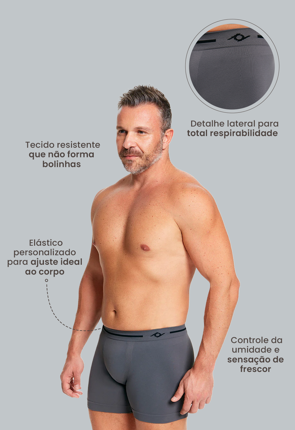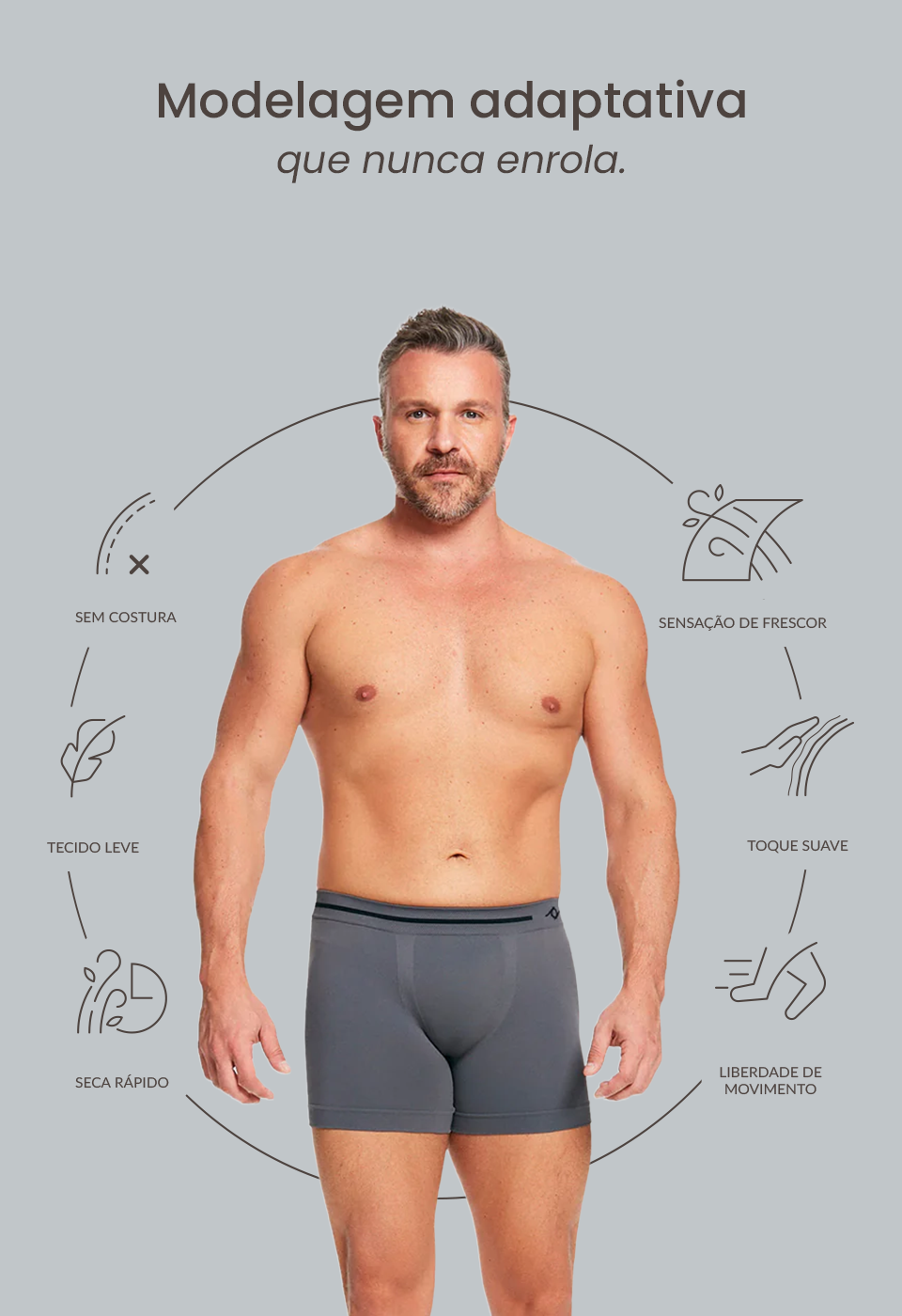 Com um toque macio e suave, essa cueca proporciona um ajuste adaptável com total liberdade de movimentos, sem enrolar nas pernas. As texturas e compressões variadas se ajustam anatomicamente ao corpo, garantindo um encaixe perfeito.