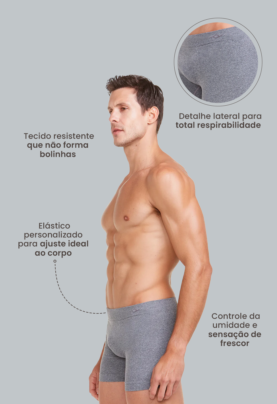 As cuecas são projetadas com diferentes níveis de compressão para um ajuste anatômico perfeito, unindo estilo, funcionalidade e responsabilidade ambiental.
