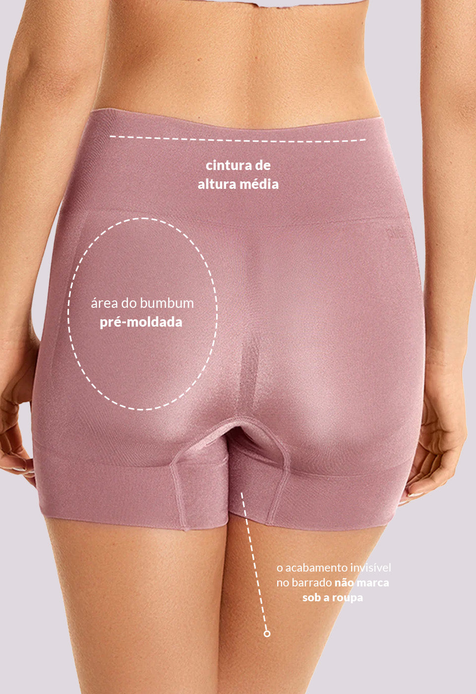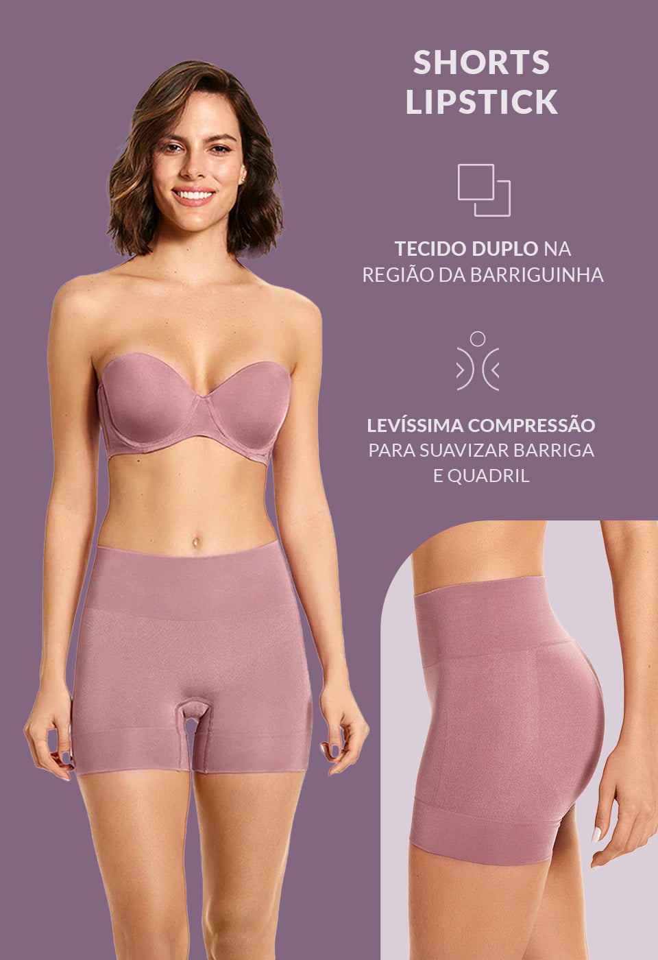 - Shorts com levíssima compressão para suavizar barriguinha e quadril.