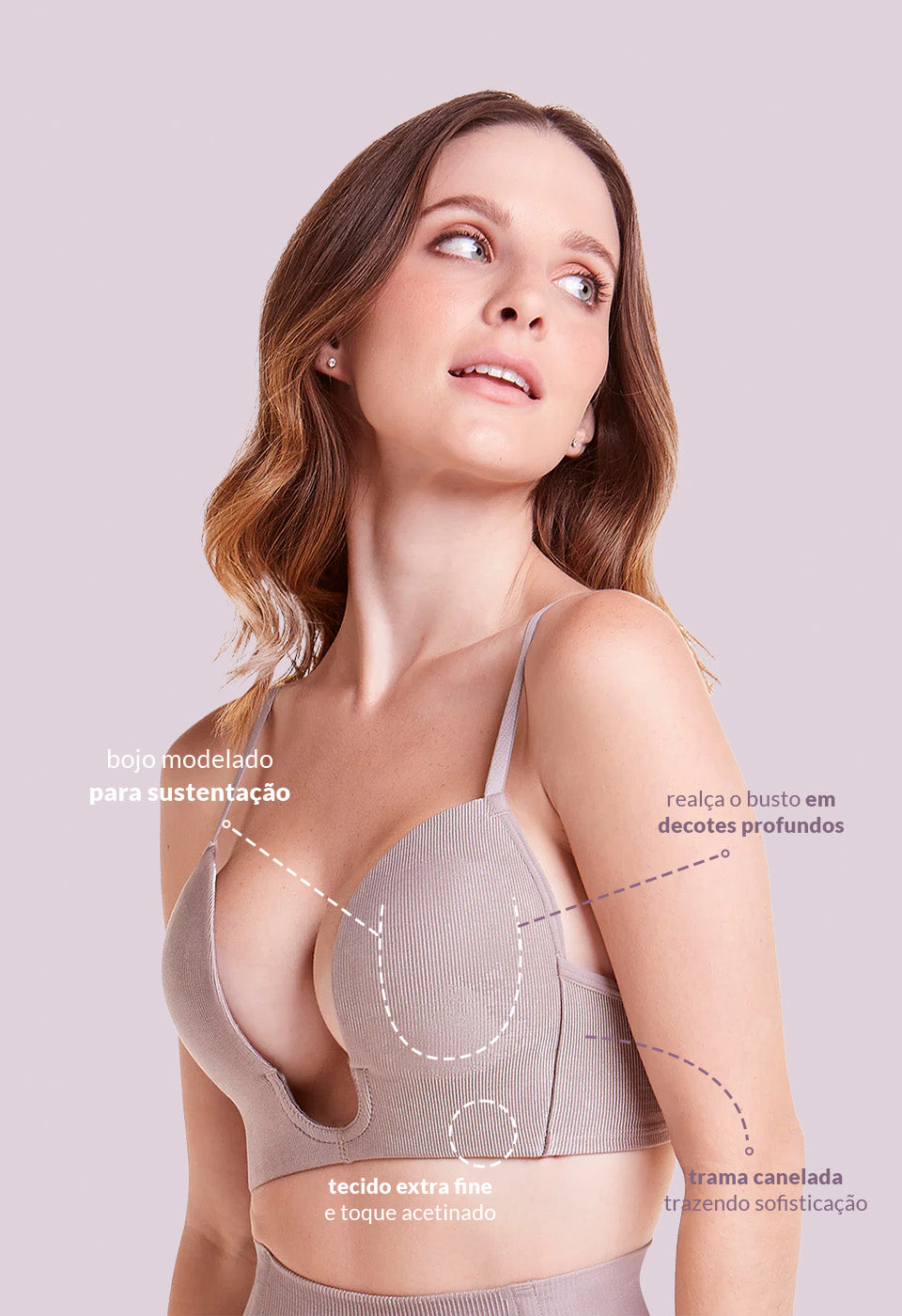 Devido ao formato exclusivo do bojo, indicamos uma numeração menor para o Deep Bra em relação à numeração usada em outros sutiãs com bojo. Ou seja, se você veste tamanho 44 de sutiã com bojo normal, indicamos que compre o tamanho 42 do Deep Bra.