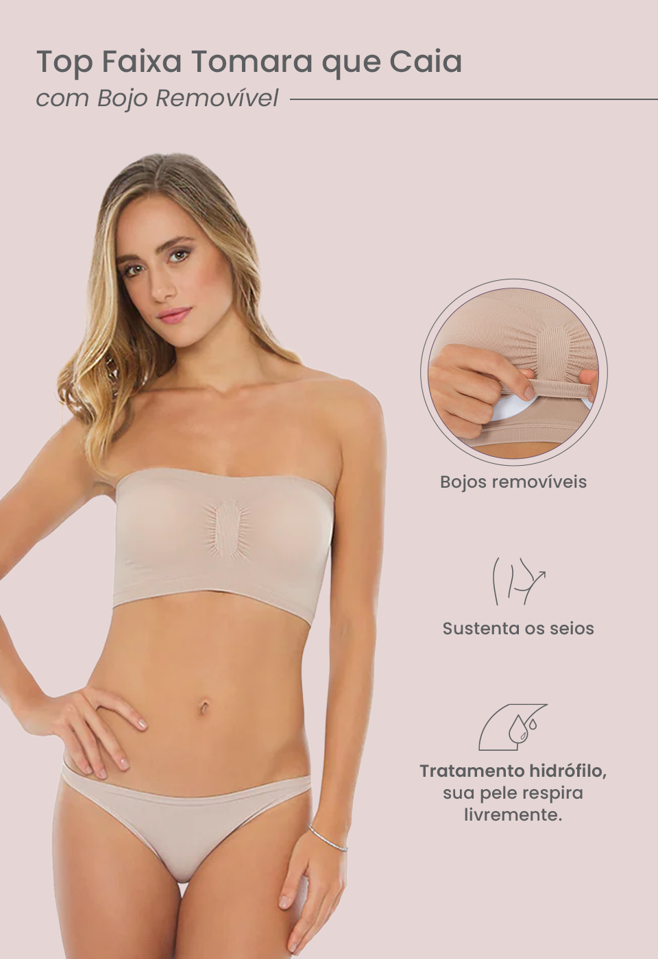O bojo removível traz ainda mais versatilidade à peça, sustentando os seios e valorizando o colo. Use com tomara-que-caia quando quiser mais sustentação ou volume.