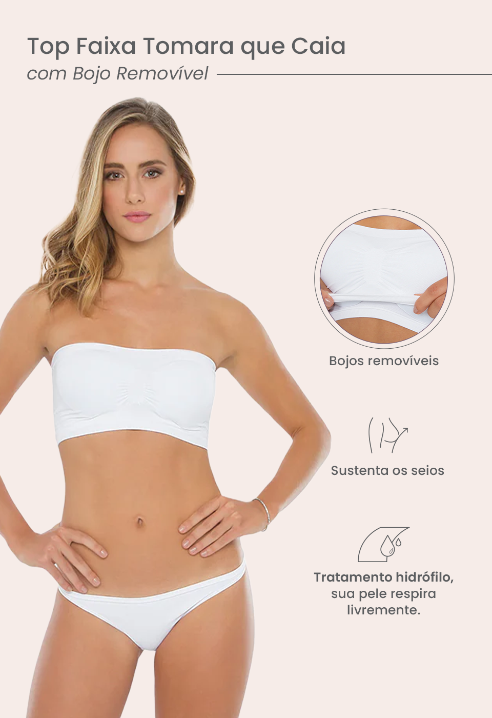O bojo removível traz ainda mais versatilidade à peça, sustentando os seios e valorizando o colo. Use com tomara-que-caia quando quiser mais sustentação ou volume.