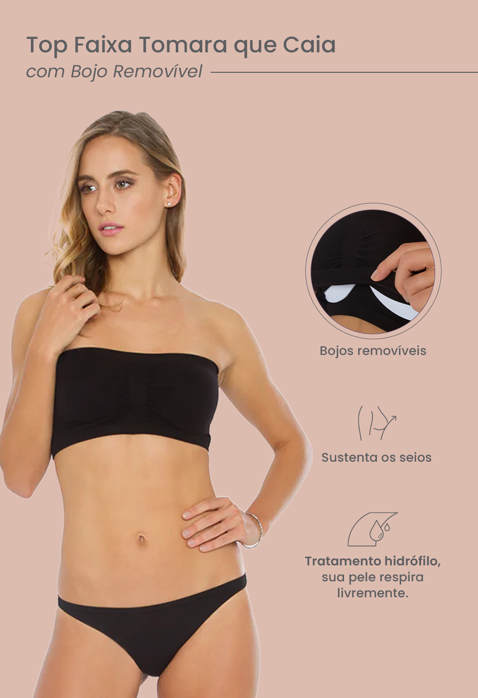 Top Faixa Tomara que Caia com Bojo Removível Preto