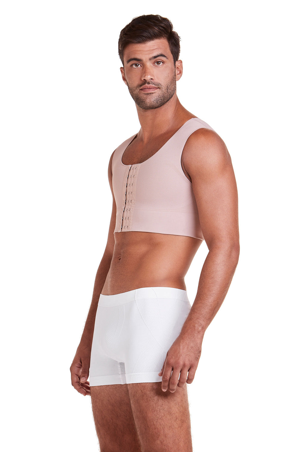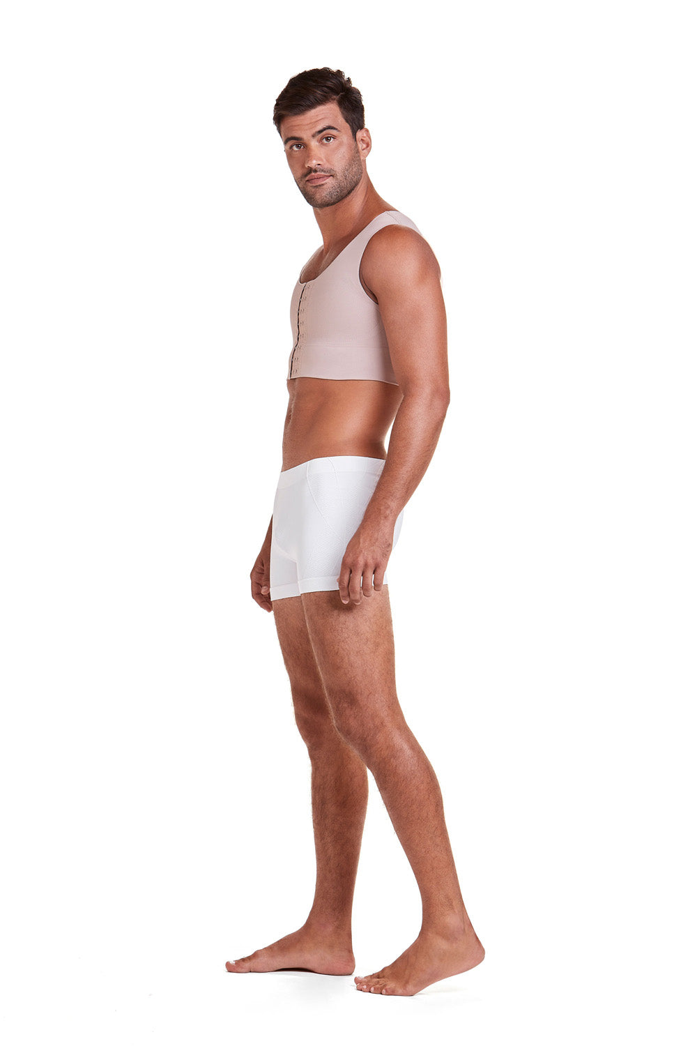 - Malha reforçada e dupla compressão no peitoral.