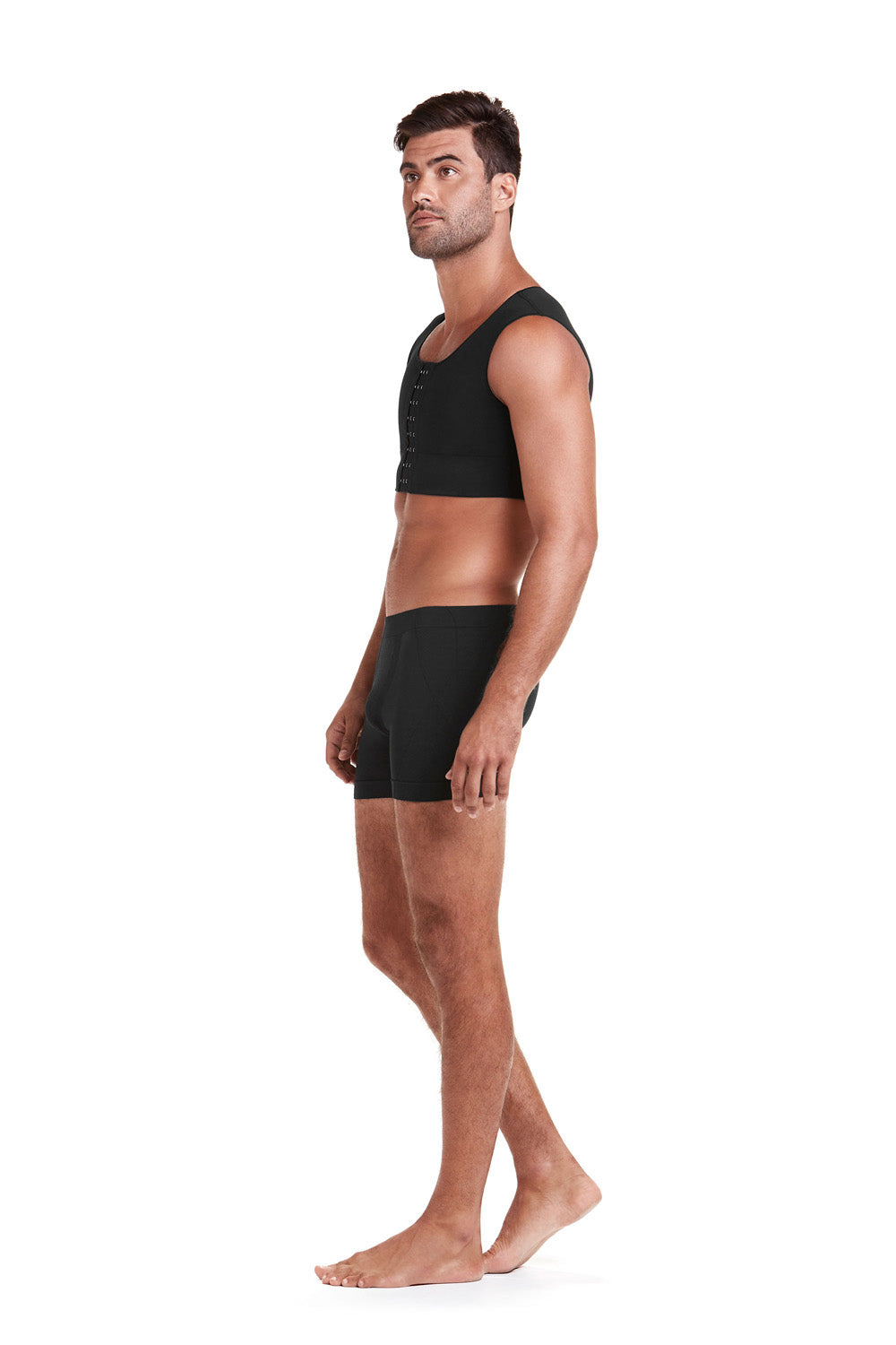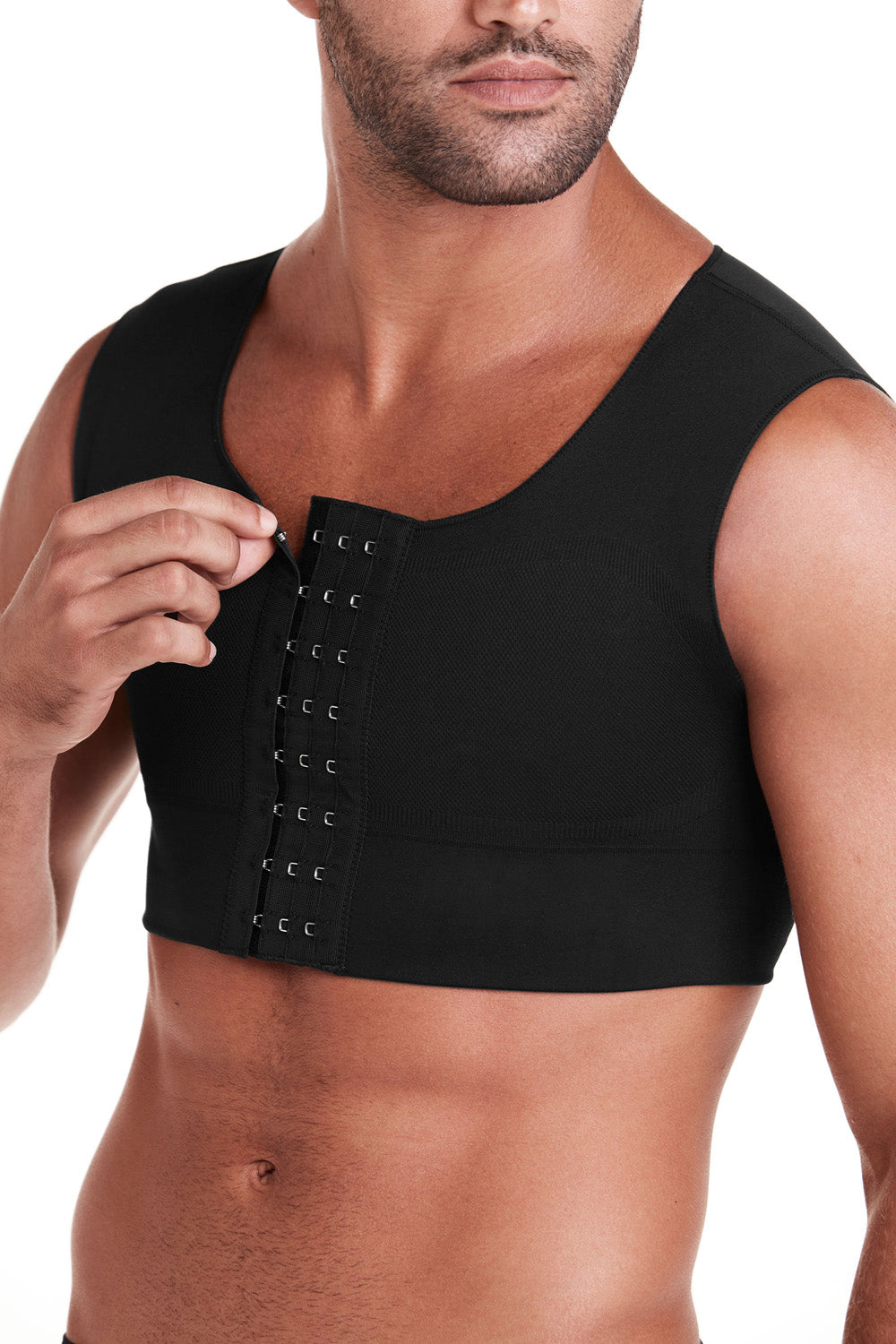 - Malha reforçada e dupla compressão no peitoral.
