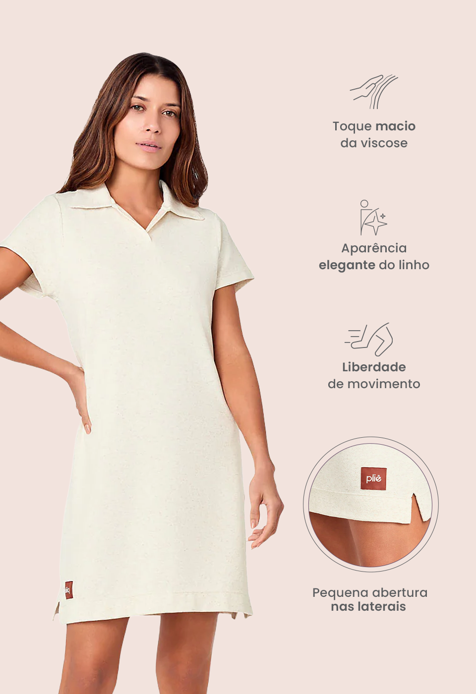 Inspirado na união entre elegância e conforto, o Vestido Polo Athleisure Linho combina a aparência sofisticada do linho com o toque macio da viscose. Sua modelagem reta até o joelho garante liberdade de movimento e um visual contemporâneo, ideal para um dia a dia com estilo leve e versátil.